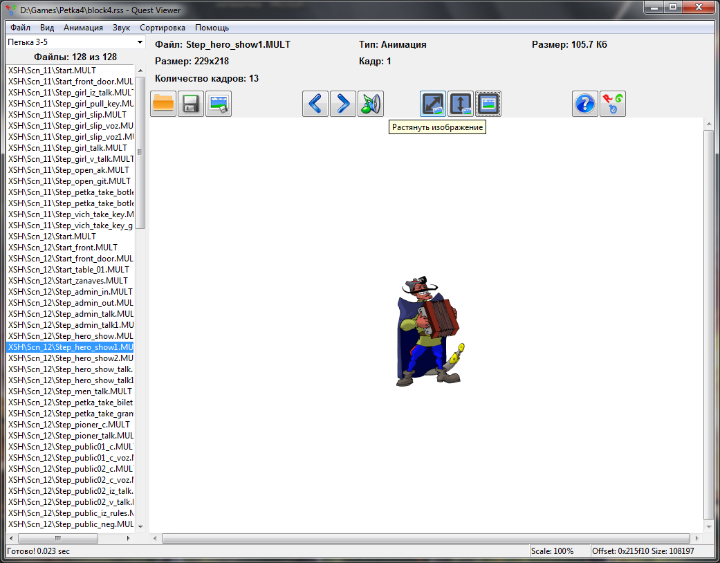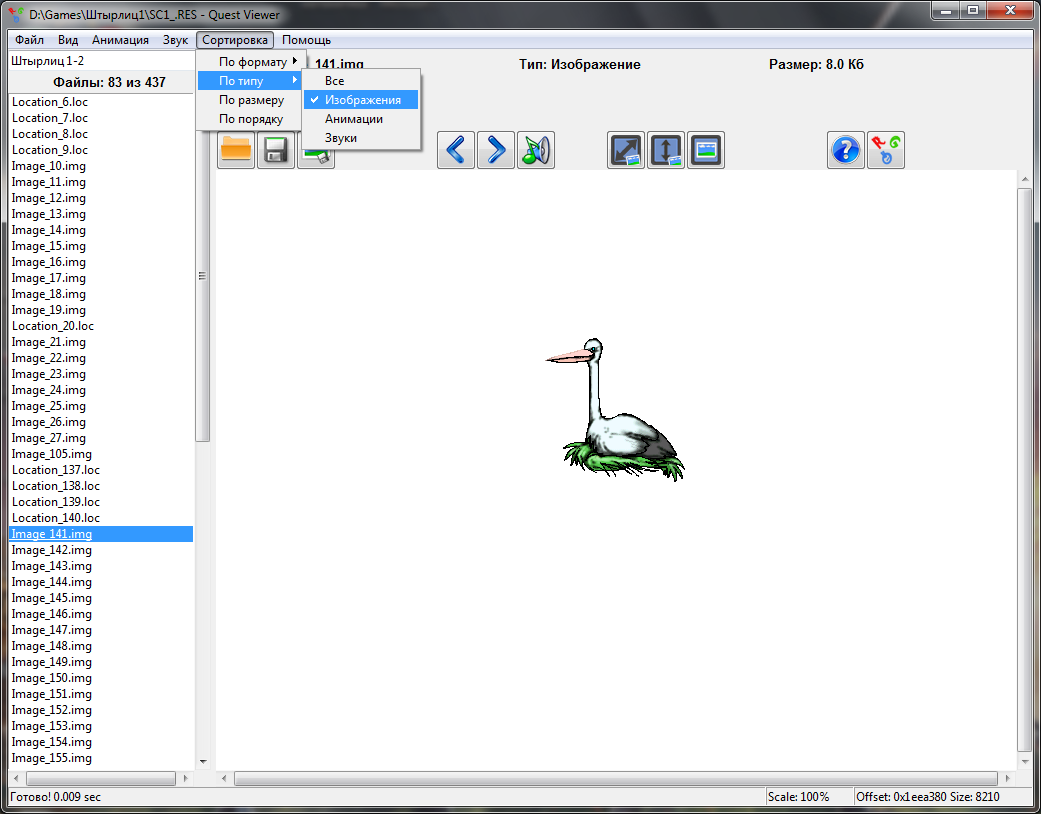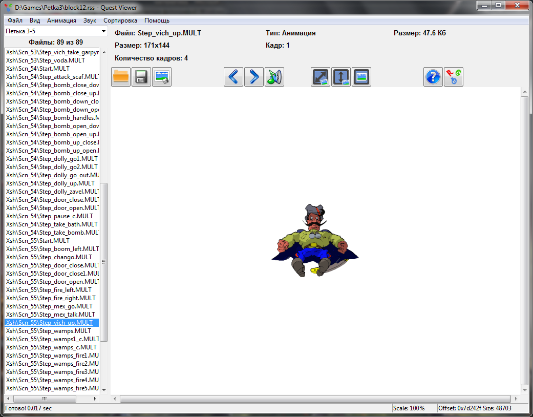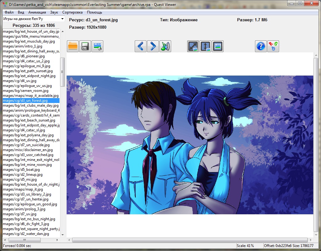 Game Viewer is the program intended for viewing of games resources. At the moment the program supports more than 500 games among which there is "Deponiya", "Infinite summer", "Siberia", "Black Mirror", "Petka and VICH", "Brothers Pilots", games on Ren'Py engine, etc. The list of games is constantly expanding! By means of this program you can look through resources of favourite games in one click! Quest Viewer allows to look through graphic, sound and text resources and export them. The selected graphic resource can be exported to any known format (PNG, JPG, BMP, etc.). For export of animation a simple editor is provided in the program which allows to save animation in GIF or any other format! Also there is a number of useful tools for work with resources in the program.